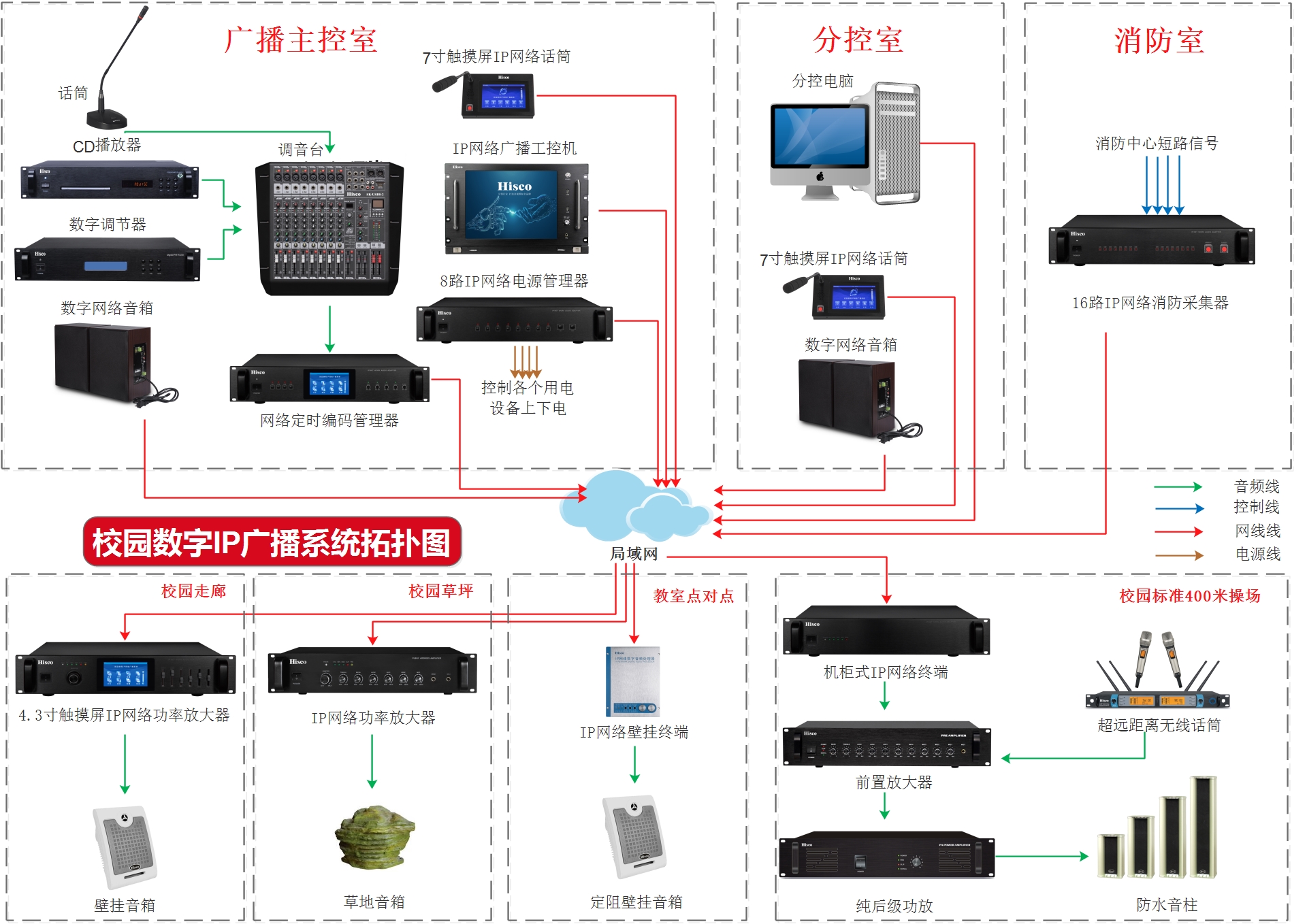 在室外运动场举行运动会、升国旗仪式等大型活动,可以在IP终端上可以插入无线话筒,进行本地扩声。