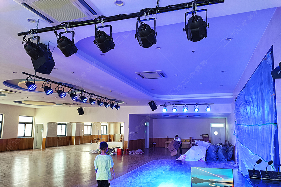 10)灯光系统,需要满足学校开会灯光柔和明亮不刺眼,演出灯光需要能创造舞台空间感和时间感,塑造舞台表演形象。