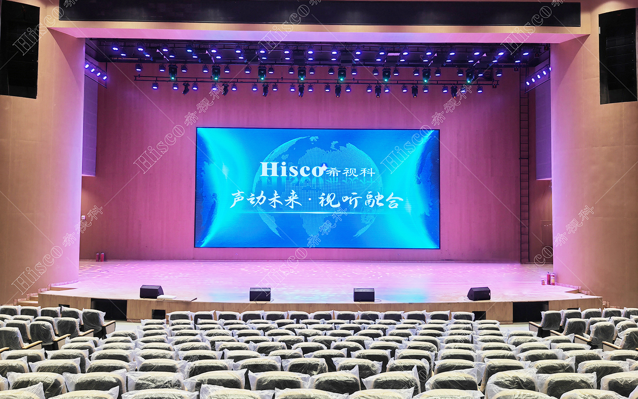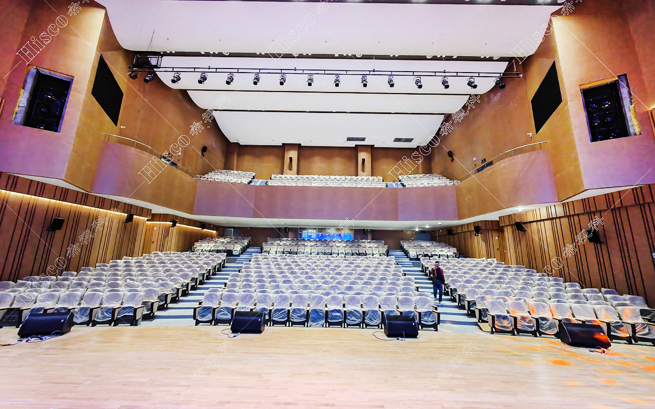 本校报告厅是一个中大型报告厅,主要为举办学校学术会议、演讲、公共大课培训及各种文艺演出,根据其建筑结构特点和使用功能及国家相关标准,根据面积和观看距离选择合适的LED大屏,展现整个舞台的宏伟大气;扩声采用集中与扩散相结合的扩声方式,开会和报告时采用单声道集中扩声还原模式,所有音源都从主席台发出,声像的平衡、方位无倾斜,保证了下面学生听到的直达声响度和均匀度达到要求,让学生听的适宜和舒服。演出时采用左右立体声空间成像模式,直达声与辅助音箱的效果声相结合表演,传达表演意境,使得演员和观众之间产生一种无声的交流。