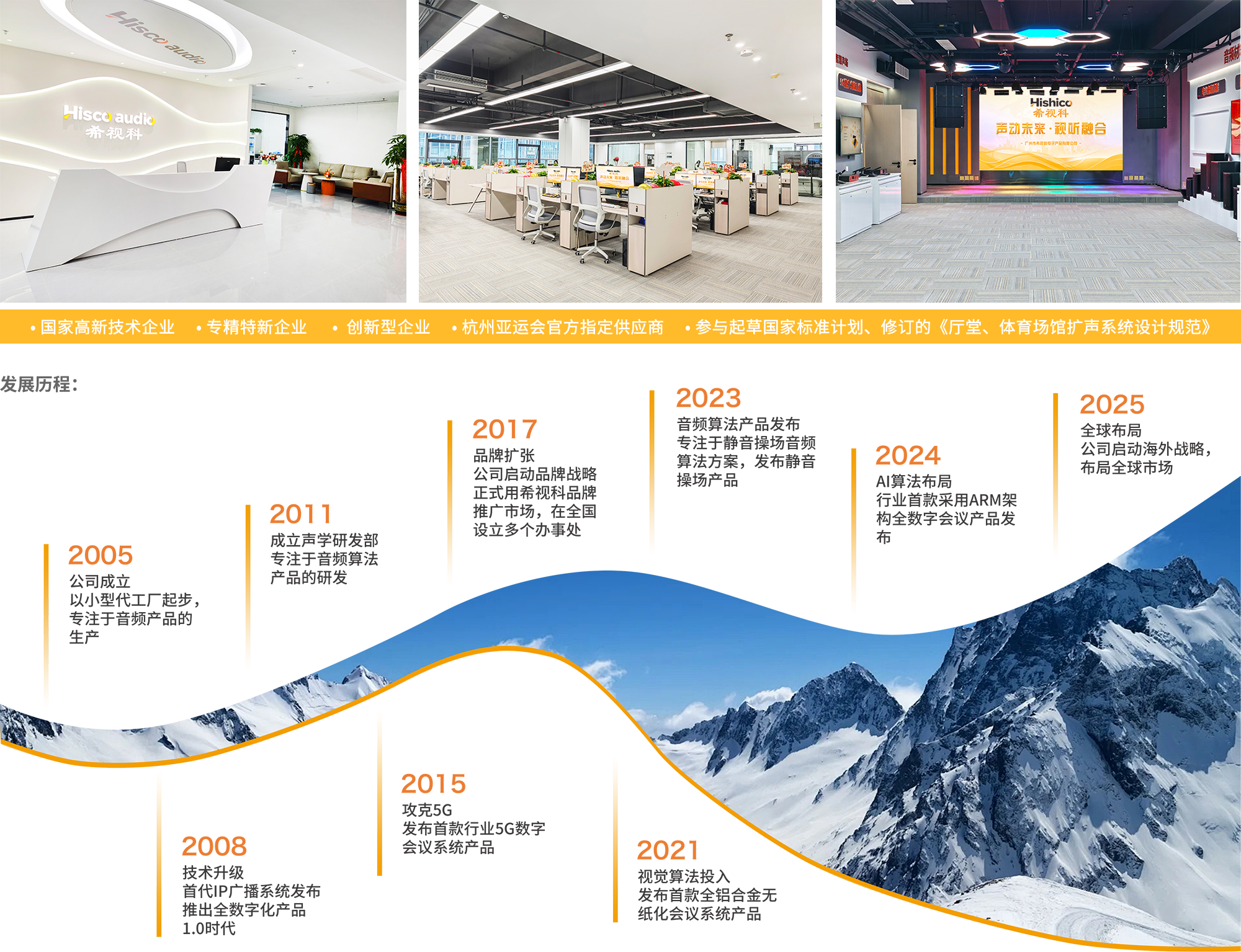 专注于声学领域产品的研发,主要以网络数字会议系统,专业扩声音箱,静音操场,国产IP麒麟广播系统,分布式坐席管理系统,无纸化会议系统为核心研发的产品,给客户提供整套音视频解决方案。