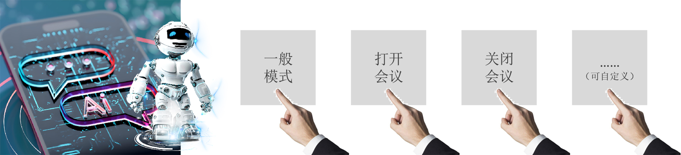 二、自定义预设应用场景,如:视频会议模式,一般模式、打开会议、关闭会议等,可语音快速切换。