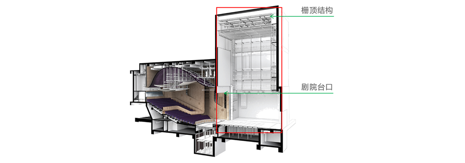 ? 甲等剧场不应小于台口高度的2.5倍;乙等剧场不应小于台口高度的2倍加4.00m;丙等剧场不应小于台口高度的2倍加2.00m;丙等剧场如不设栅顶,宜设工作桥,工作桥的净宽不应小于0.60m,净高不应小于1.80m,位置应满足工作人员安装、检修舞台悬吊设备的需要。