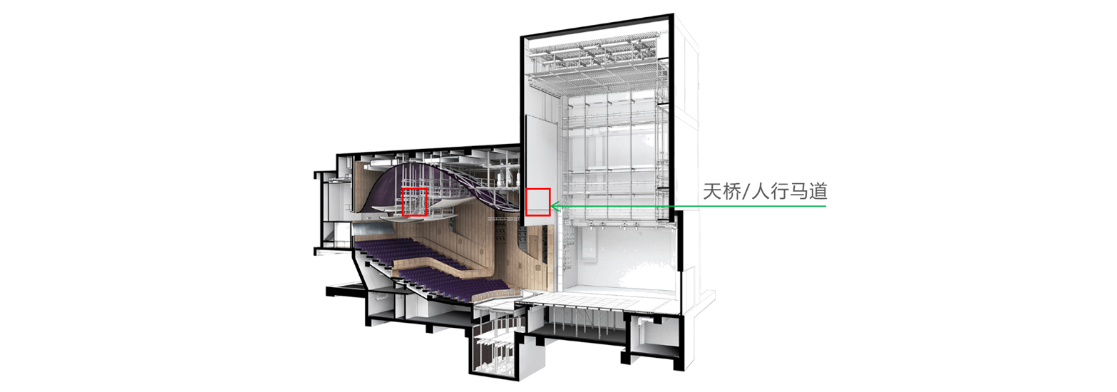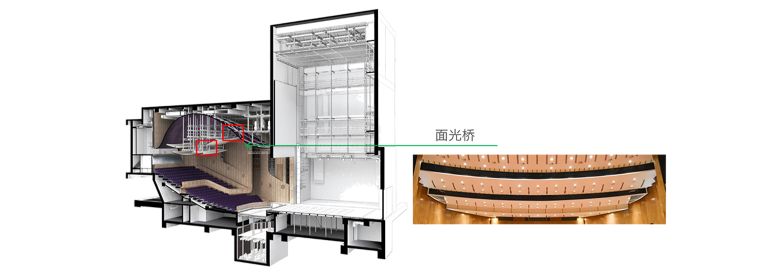 ? 面光桥宽度不应小于1.20m ,净高度不应低于1.80m, 面光桥与吊顶内空间宜做声学处理。