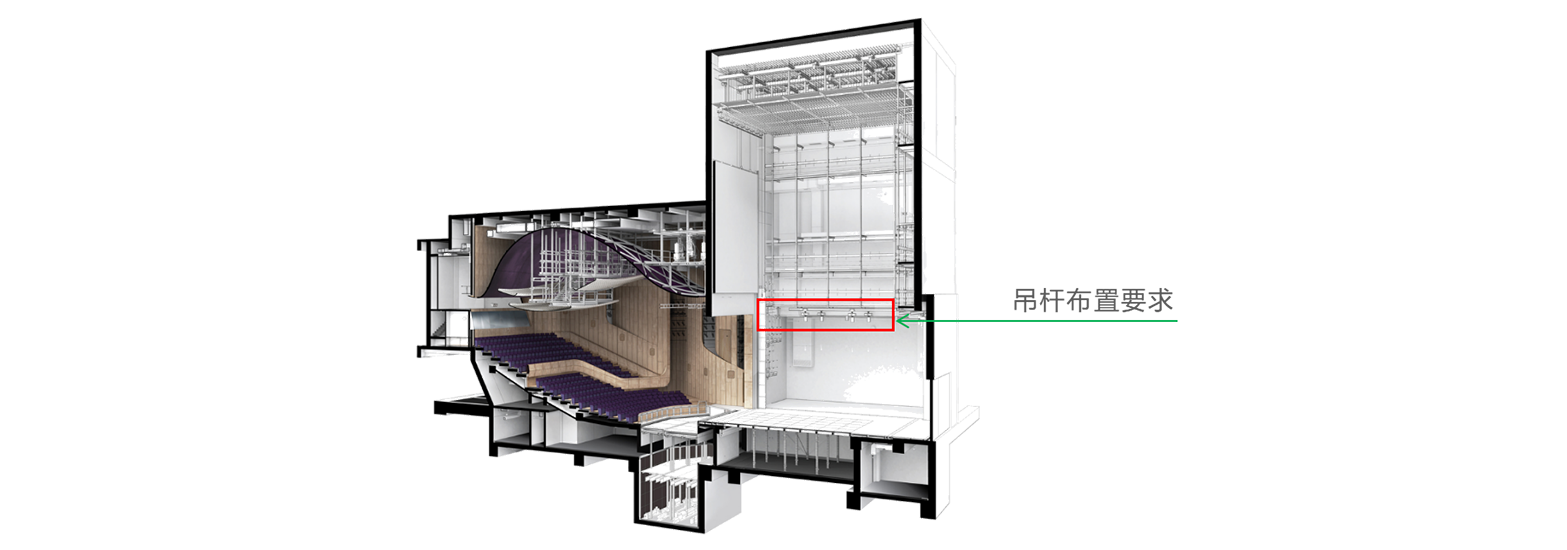 ? 吊杆的长度和吊点的数量及间距应与台口和主舞台的宽度相适应。
