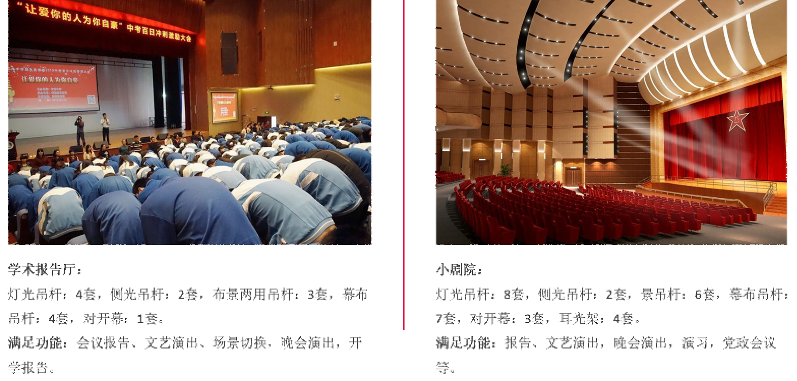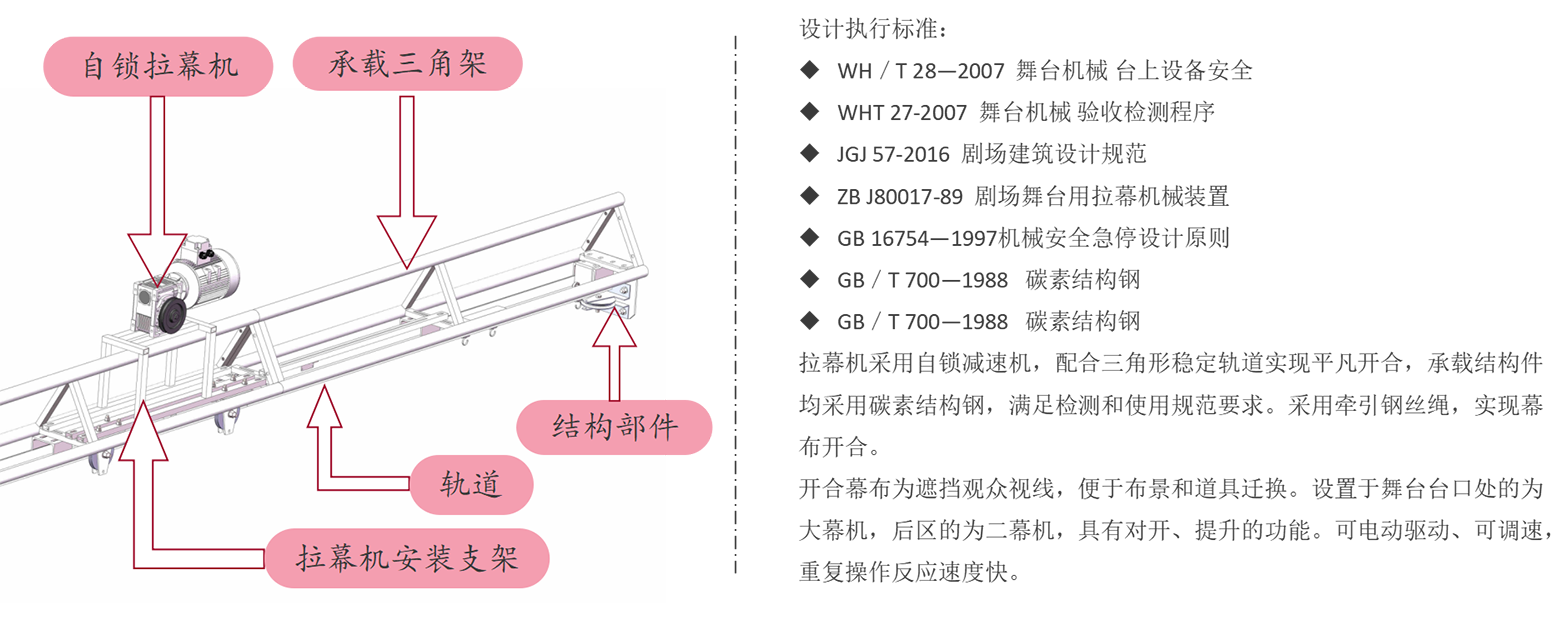 ?这些设备包括但不限于台上机械、台下机械、升降舞台、伸缩舞台、旋转舞台、活动假台口、灯光吊笼、灯光吊片、对开系统、电影银幕架、升降系统、电动吊杆机等。