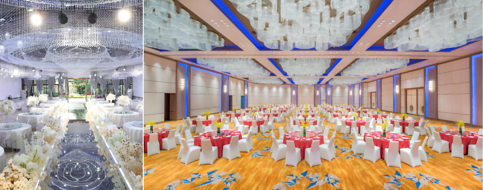 ? 宴会厅,指用于婚庆活动、公司聚餐、大型集会、演讲、报告、新闻发布、产品展示、中小型文艺演出、舞会等活动的场所。