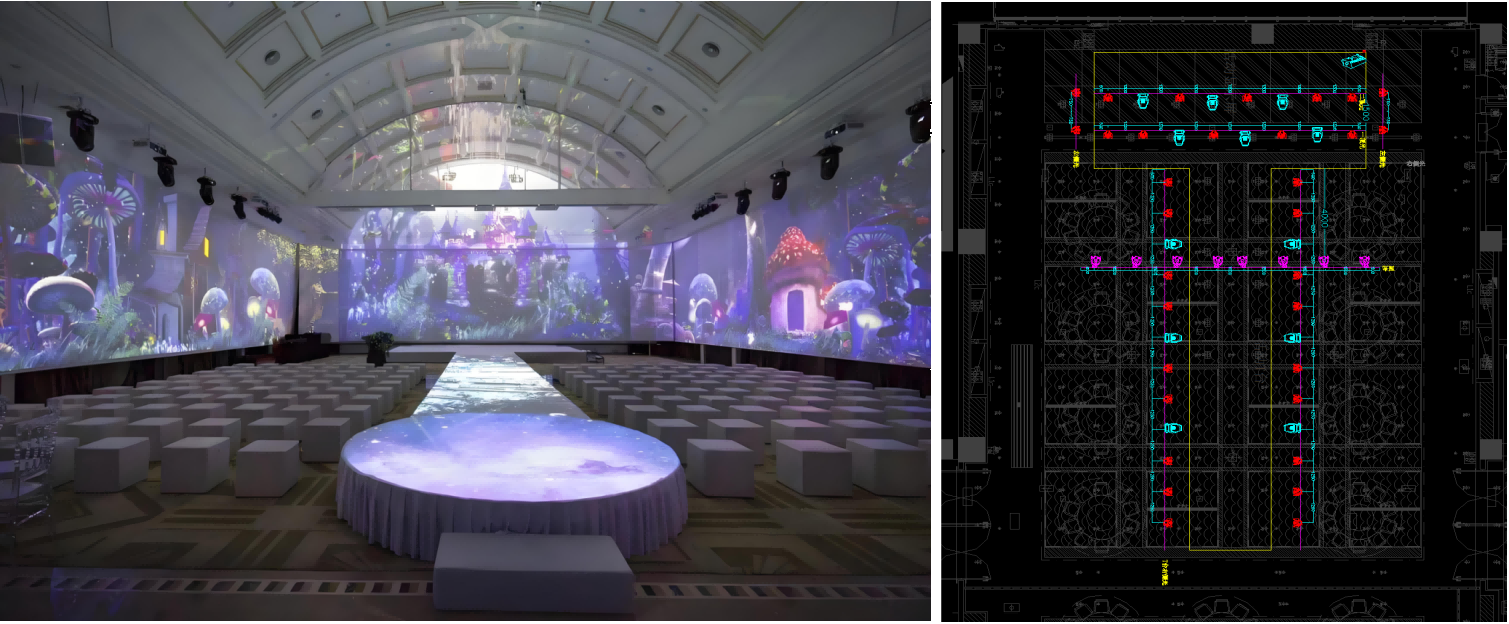 ? 此方案是会议报告模式+娱乐演出效果模式。