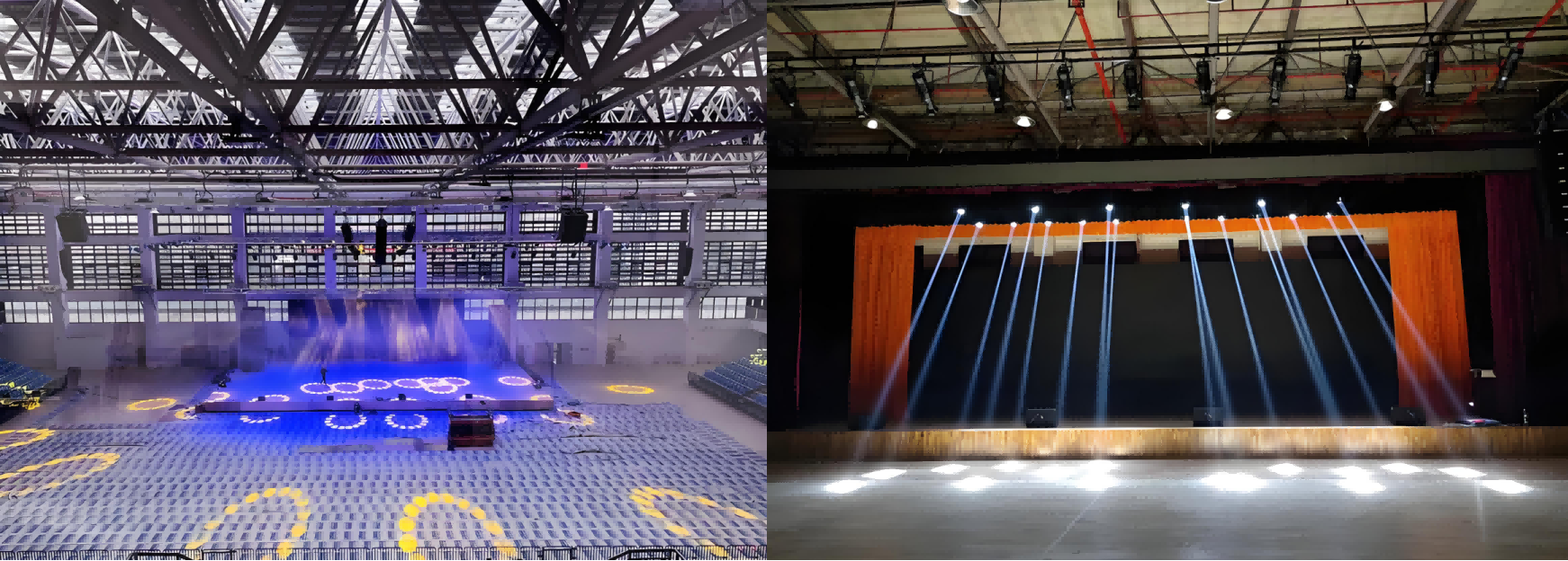 ?视觉增强:体育馆通常举办各种活动,如体育赛事、音乐会、展览等。舞台灯光系统能够增强这些活动的视觉呈现,使得观众无论在哪个位置都能获得清晰的视野。