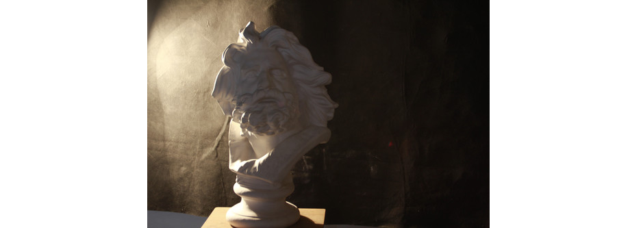 侧光的射距由近到远,投光角度由近至远,变化极多,来自单侧或双侧的造型光,可以强调、突出侧面的轮廓,适合表现浮雕、人物等具有体积感的效果。双侧光可以表现具有个性化特点的夹板光,但需要调整正面辅助光与侧光的光比才能获得比较完善的造型效果。