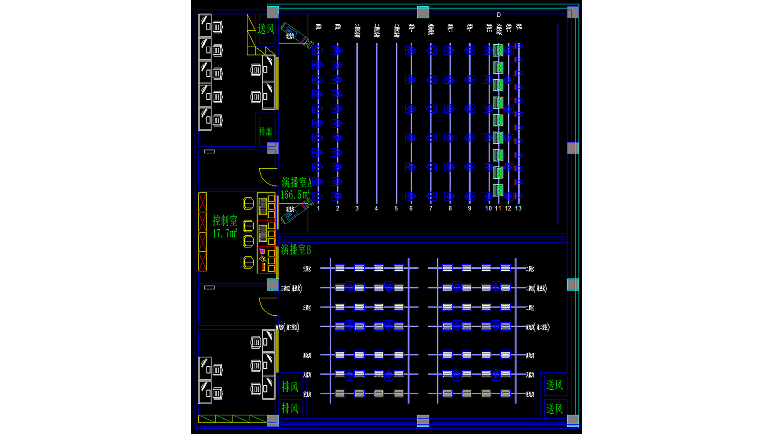 ? 演播室A:效果光、天幕灯、观众灯、面光等