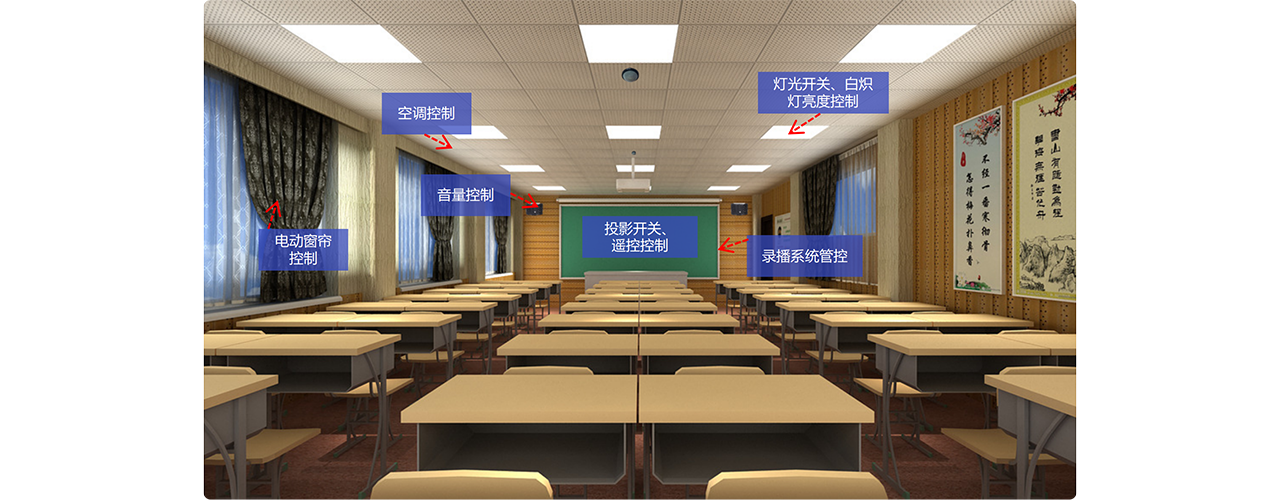 ? 随着电子课堂的发展,在学校电教室越来越智能化,会有电动窗帘、健康照明、跟踪录播系统、教学一体机、电子展台等设备,往往这些设备厂商相对独立,通过智能中控系统可实现对电教室设备的统一管理。