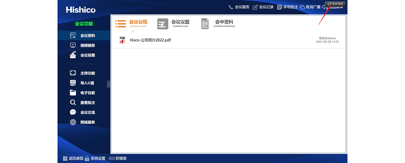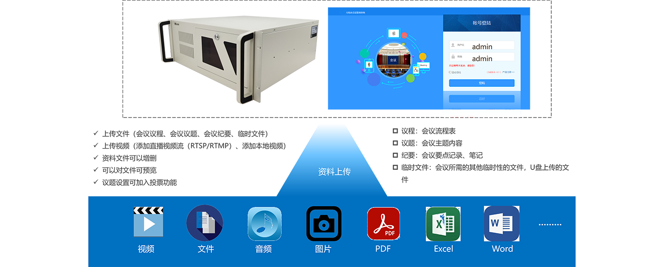 远程登陆:在办公室便可完成会前工作准备,支持多个管理员,互相不干扰;
