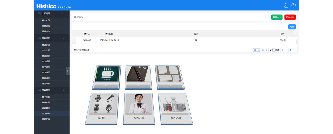 ? 会议过程中,如有会议服务需求,可以在“会议服务”界面,选择相应的需求,呼叫会议服务